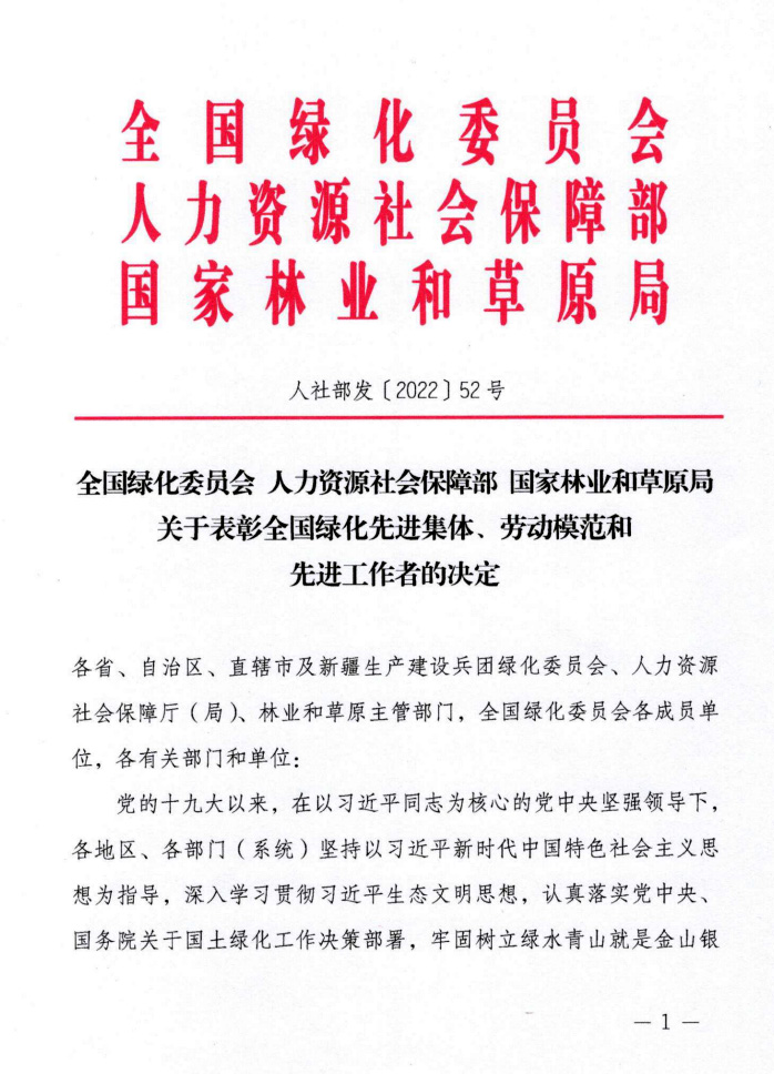 近日,作为受表彰先进集体收到全国绿化委员会、人力资源社会保障部、国家林业和草原局《关于表彰全国绿化先进集体、劳动模范和先进工作者的决定》红头文件。是该奖项2001年启动以来,辽宁省首个获此殊荣的高校集体。