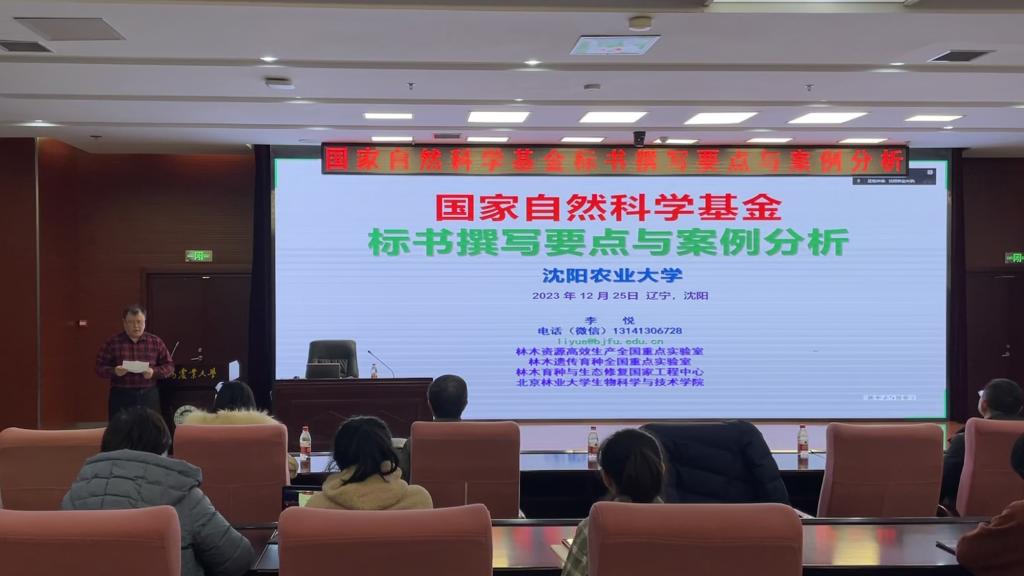 12月25日,北京林业大学李悦教授应邀请,在图书馆一楼报告厅作题为“国家自然科学基金标书撰写要点与案例分析”的报告,林学院院长王玉成教授主持报告会。报告会同步线上直播,300多名师生聆听报告。
