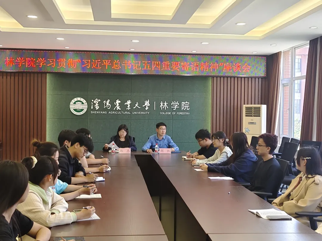 为落实团中央、全国青联、全国学联、全国少工委《关于深入学习宣传贯彻习近平总书记五四青年节对全国广大青年寄语精神的通知》,帮助广大林院青年学子正确且深入理解“习近平总书记五四重要寄语精神”,继承和发扬五四精神,团委积极组织开展“学习习近平总书记五四重要寄语精神”主题团日,并通过开展座谈交流会,分享学习习近平总书记重要寄语精神的心得与感悟。本次座谈会由林学院团委书记胡凯老师主持,林学院党委副书记杜杰老师出席本次座谈会。